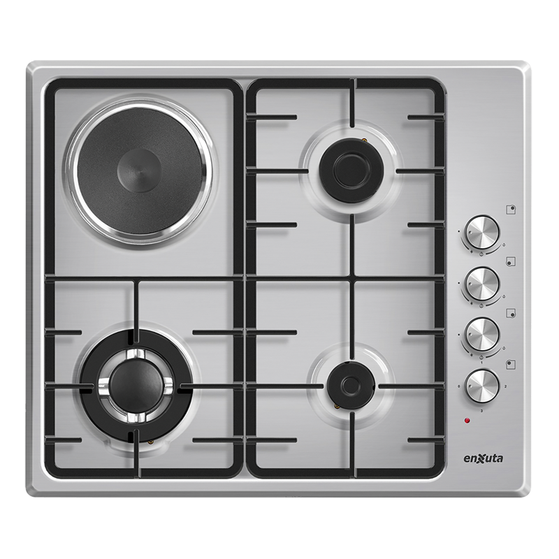 Anafe de Empotrar Enxuta con 3 Hornallas a Gas y 1 Disco Eléctrico Inox