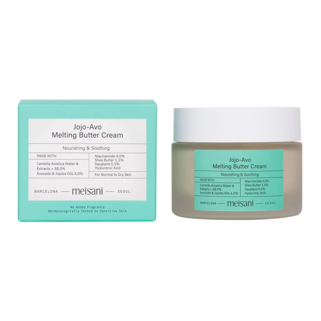Meisani ha materializado las necesidades de las pieles secas, deshidratadas o mixtas en una hidratante de textura súper cremosa repleta de ingredientes hiper hidratantes y nutritivos: Jojo-Avo Melting Butter Cream.